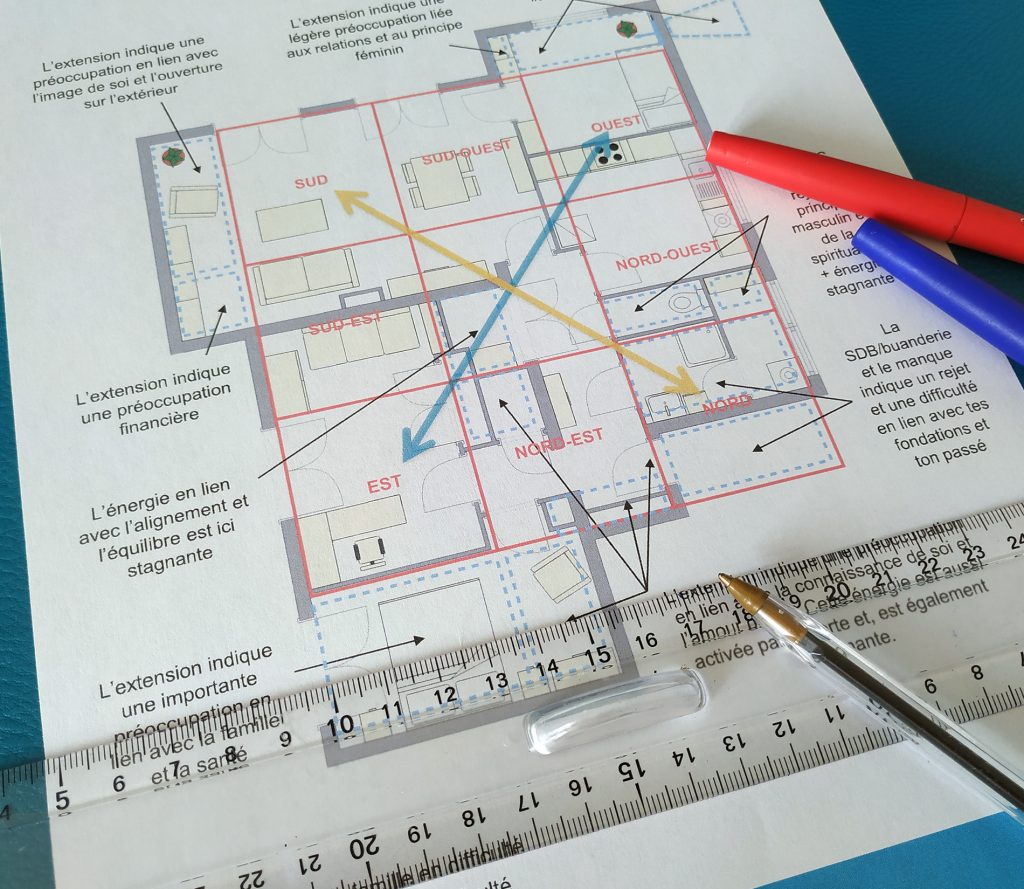 Le Feng Shui considère que notre lieu de vie est notre reflet. Je me déplace donc dans un premier temps chez vous. Puis j’étudie ensuite votre plan à l’aide de différents outils du Feng Shui traditionnel. Cela me permet de décèler les blocages énergétiques qui peuvent se jouer dans un ou plusieurs domaines de votre vie :